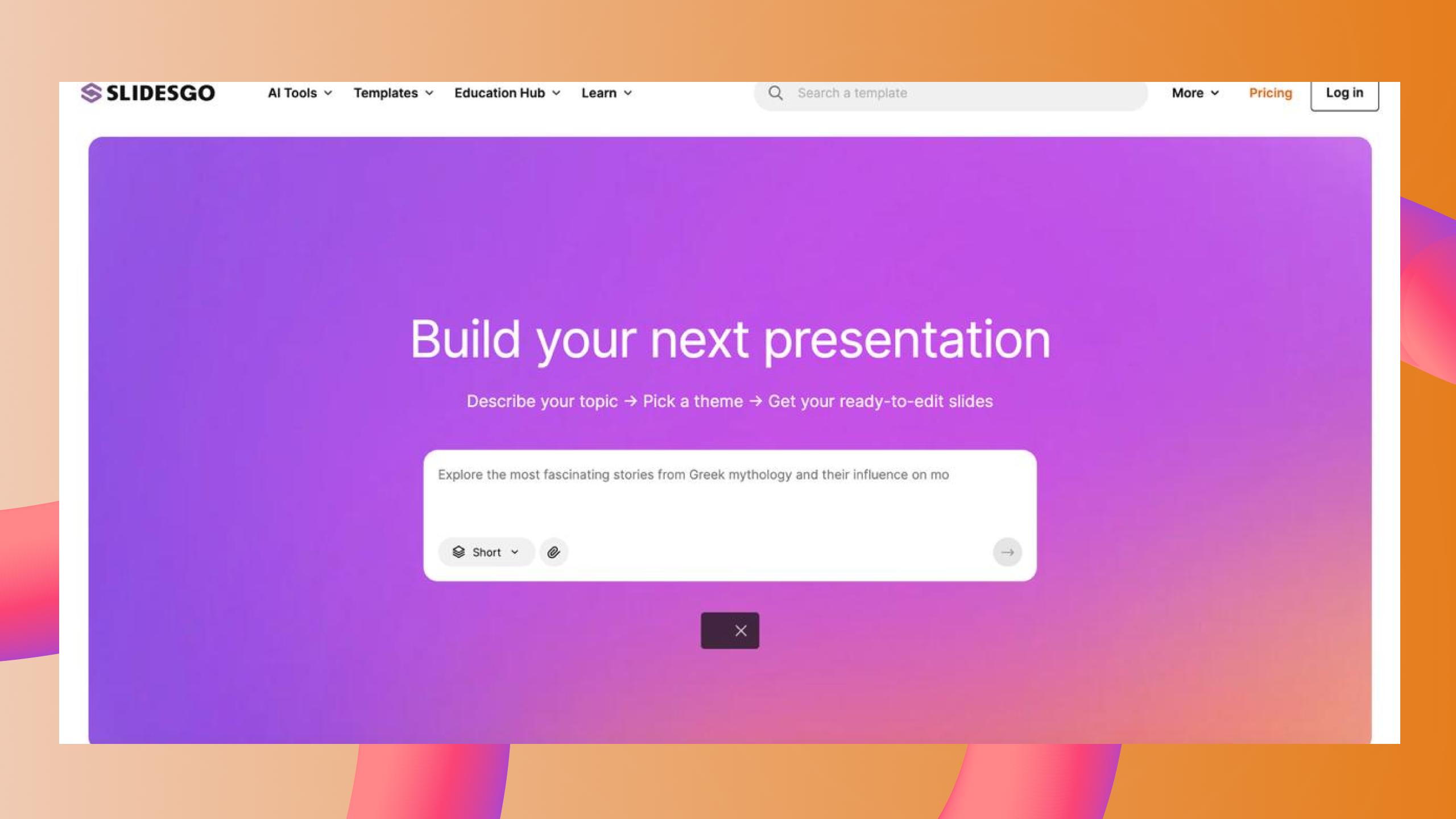 Freepik — еще один сервис, который помогает быстро создать презентацию на основе короткого текстового запроса. Он предлагает ограниченный набор шаблонов и автоматически подбирает изображения для слайдов.