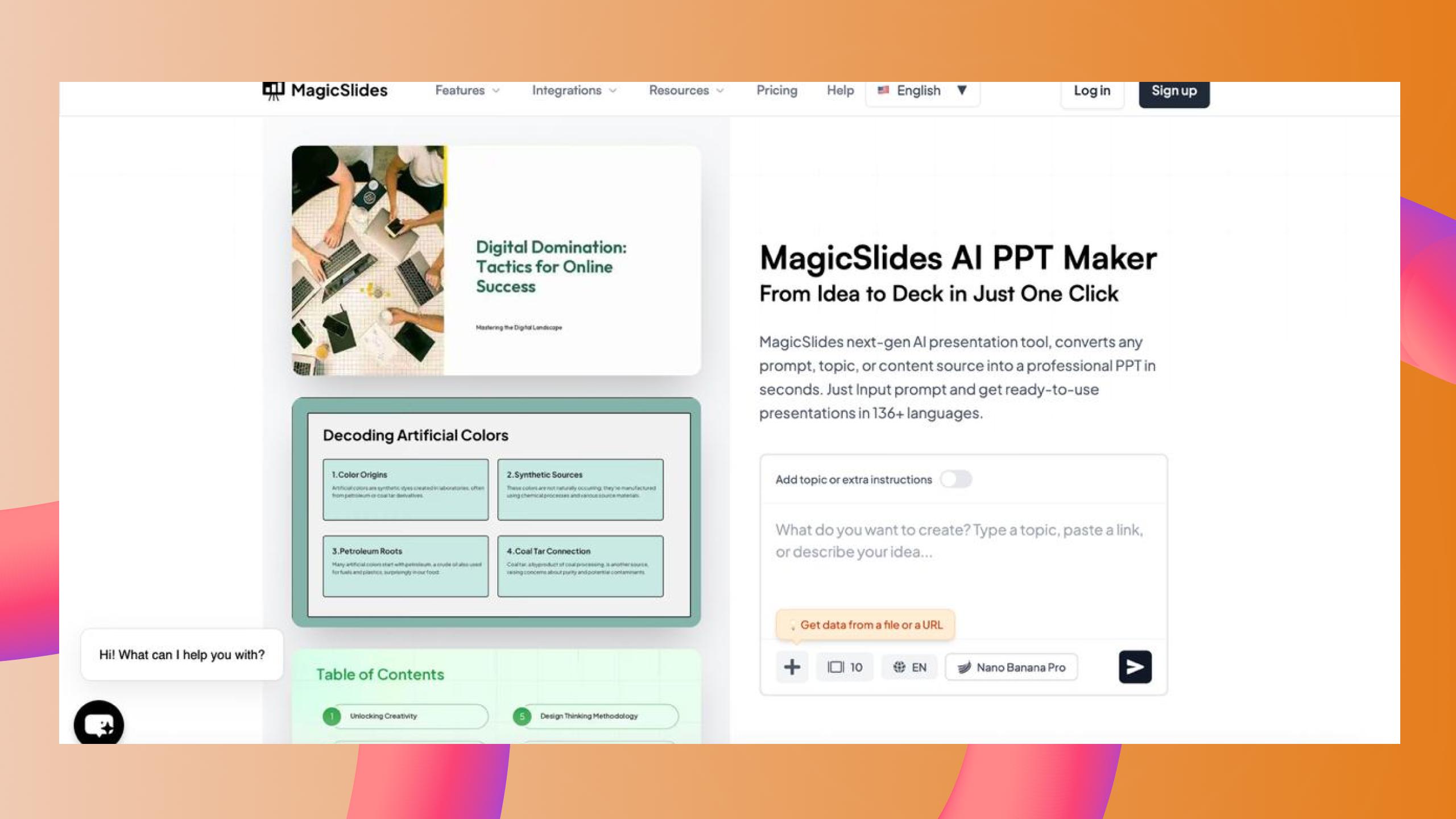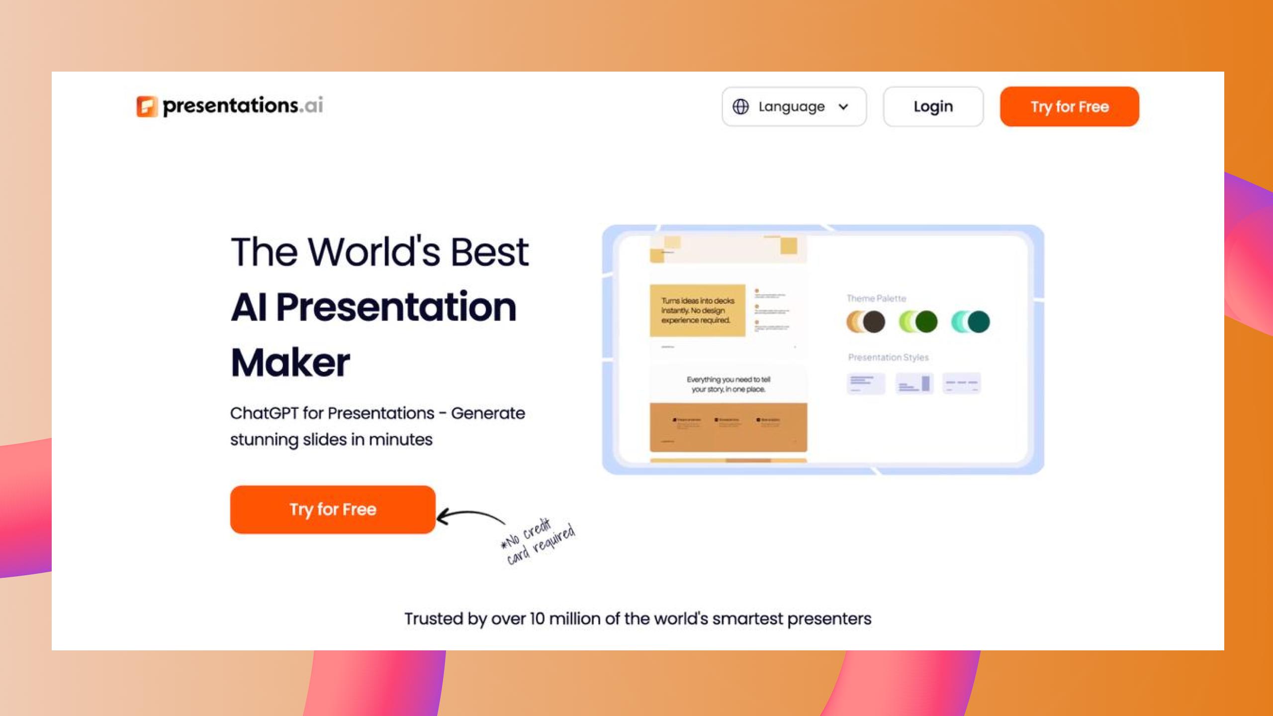 Presentations.AI — современный инструмент, который позволяет создавать презентации на основе короткого текстового запроса или загруженного документа. Сервис автоматически формирует структуру слайдов и предлагает логичный порядок подачи информации.