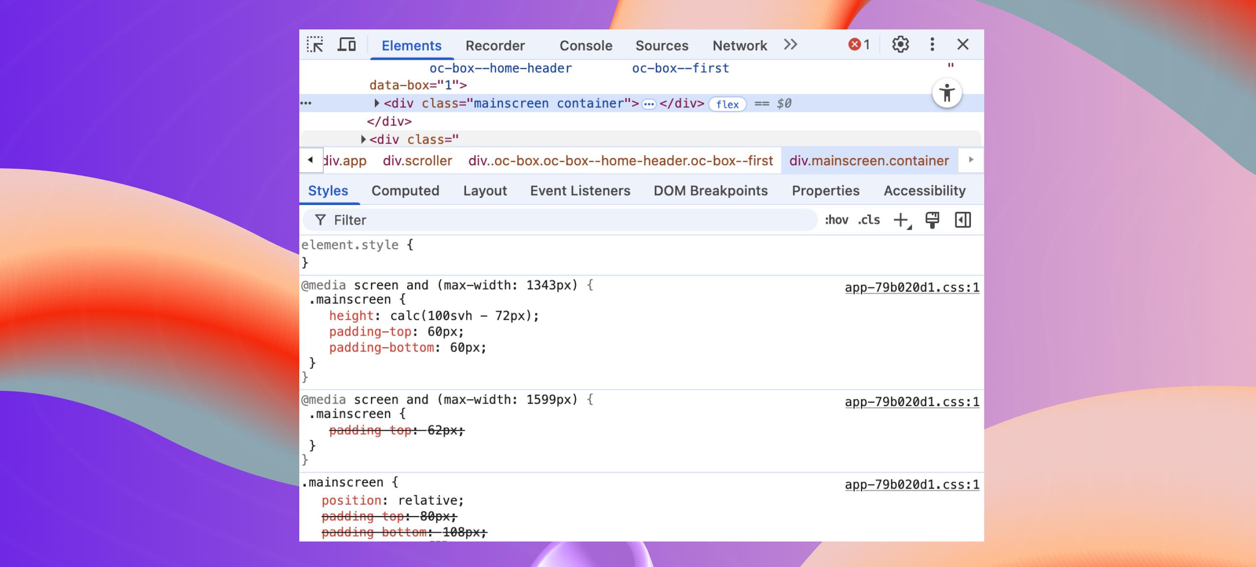 Проблемы со стилями можно проверить во вкладке Elements: выберите элемент, посмотрите, какие CSS-правила к нему применяются.
