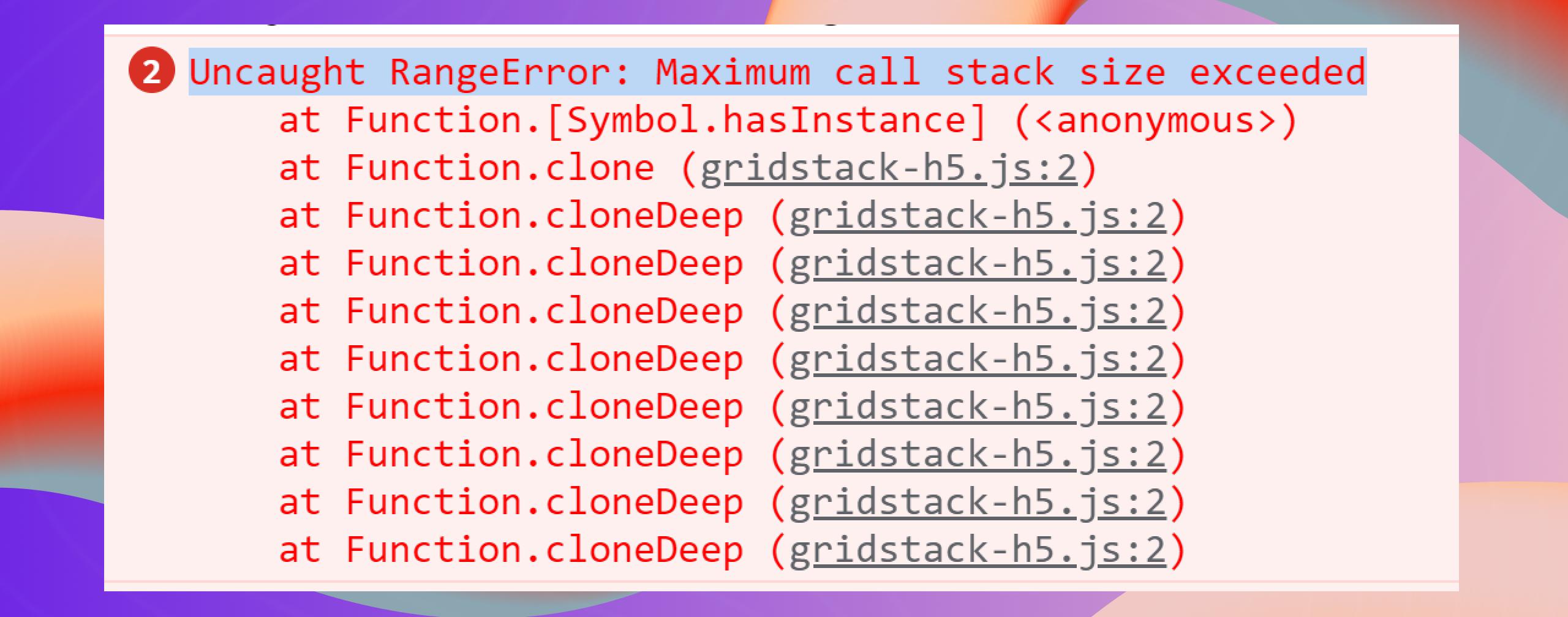 Ошибка переполнения стека вызовов. Чаще всего возникает при бесконечной рекурсии.