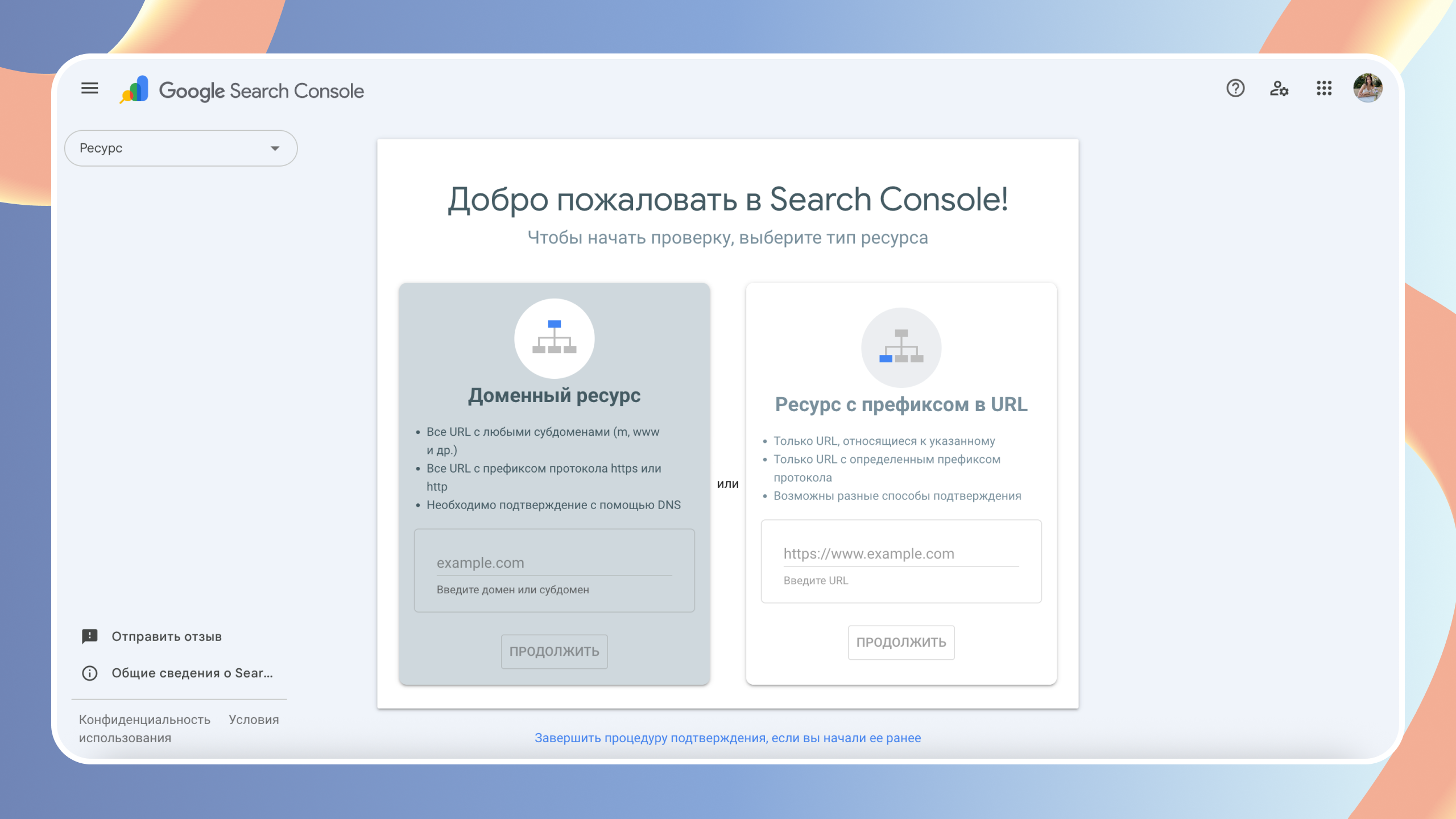 Для начала необходимо авторизоваться в Google Search Console под Google-аккаунтом. После входа система предложит добавить новый ресурс. Google поддерживает два типа ресурсов: доменный ресурс и ресурс с URL-префиксом. Выбор типа влияет на полноту данных и способы подтверждения прав.