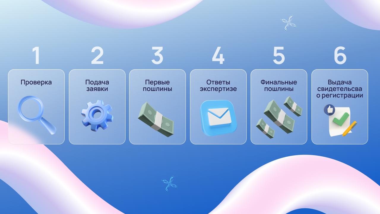 Сумма разбита на два этапа: сначала вы платите 25 000 ₽ за глубокую проверку и подачу заявки (это дает «бронь» на название). Остальные 25 000 ₽ через 6–8 месяцев платите по желанию только после одобрения от Роспатента, чтобы получить свидетельство.