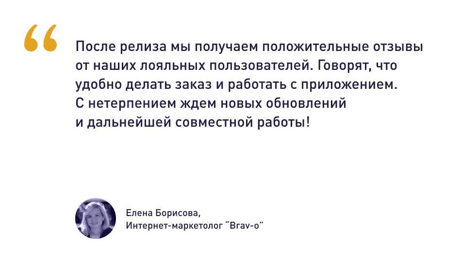 За 3 месяца мы разработали мобильное приложение Brav-o на Flutter. Его можно скачать в App Store и в Google Play. На 2 месяце после запуска приложения доля заказов с приложения составила более 5% от общего количества интернет-заказов.