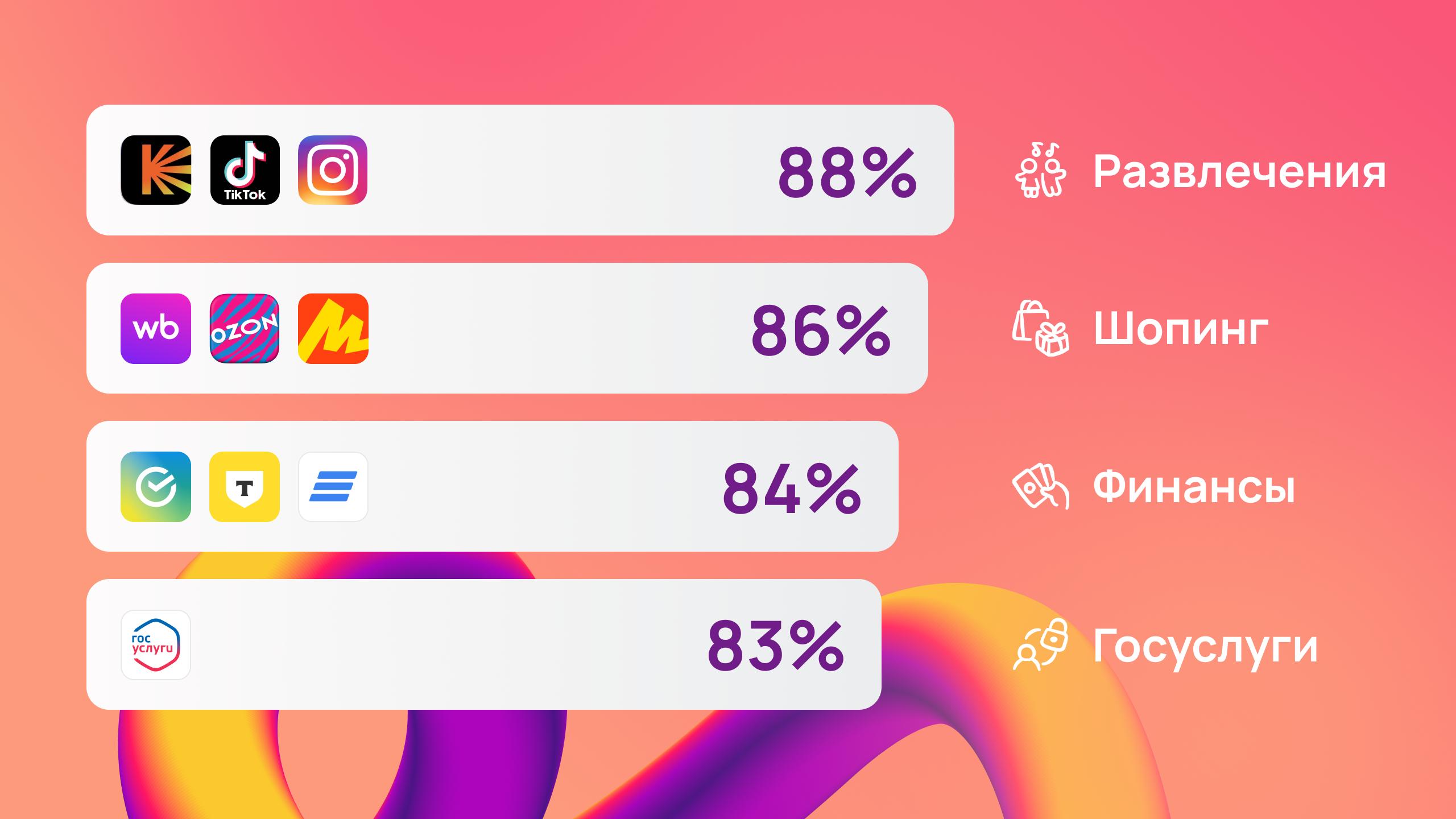 Согласно исследованию, есть 4 сферы, где мобильные приложения вошли в повседневную жизнь россиян: