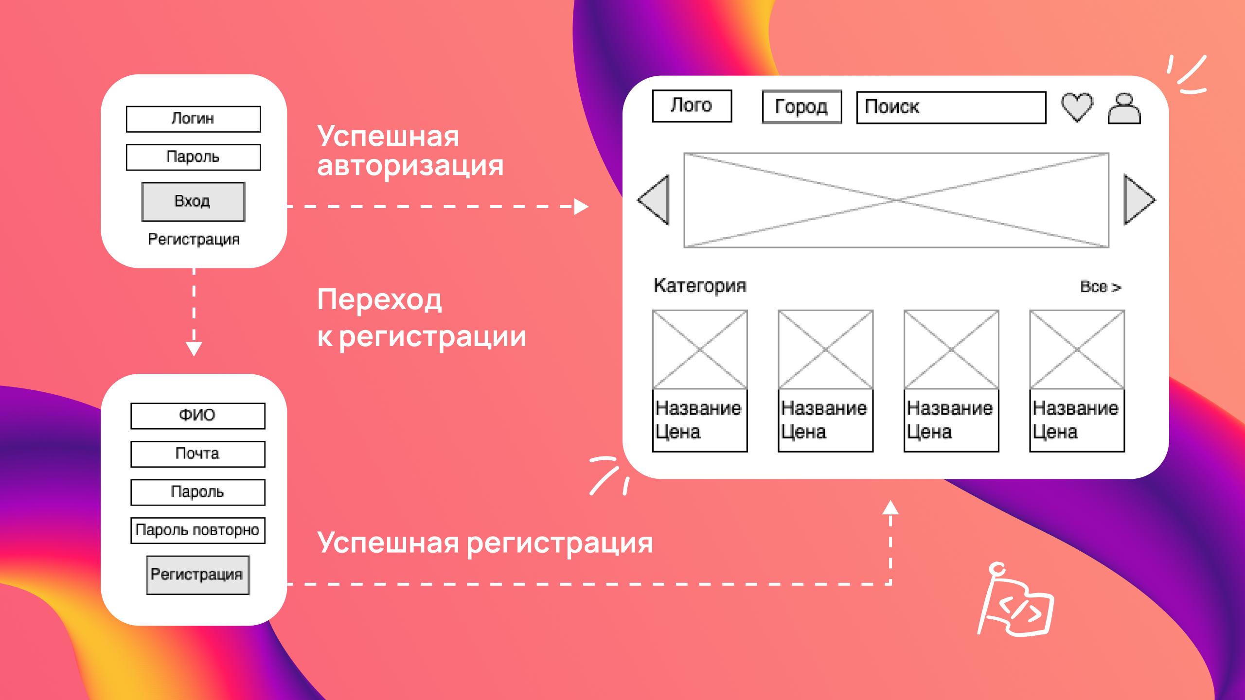 Пример: с помощью инструментов, таких как Figma или Sketch, создайте макеты экранов и определите навигацию между ними.