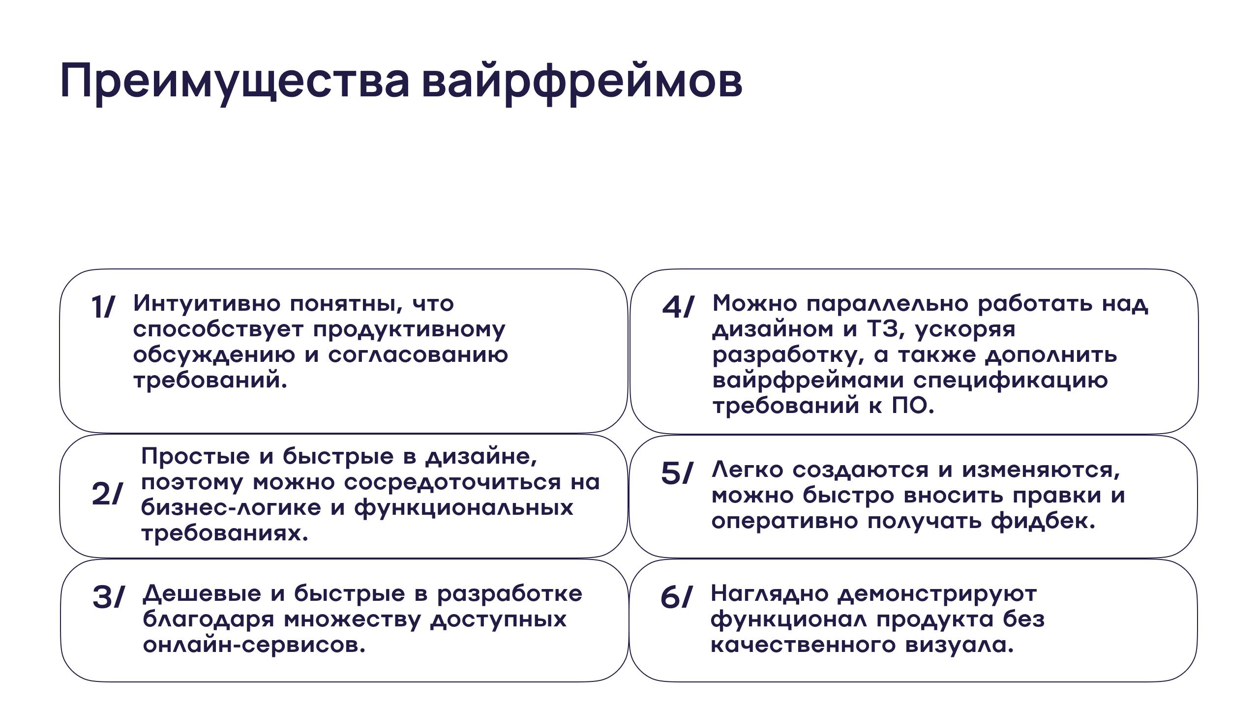 Прототипы с низкой точностью особенно ценны, они позволяют быстро визуализировать общую структуру и основные сценарии работы, не отвлекаясь на дизайн, а также повышают гибкость и скорость взаимодействия с заказчиком и командой, помогая вовремя согласовать ключевые бизнес-процессы.