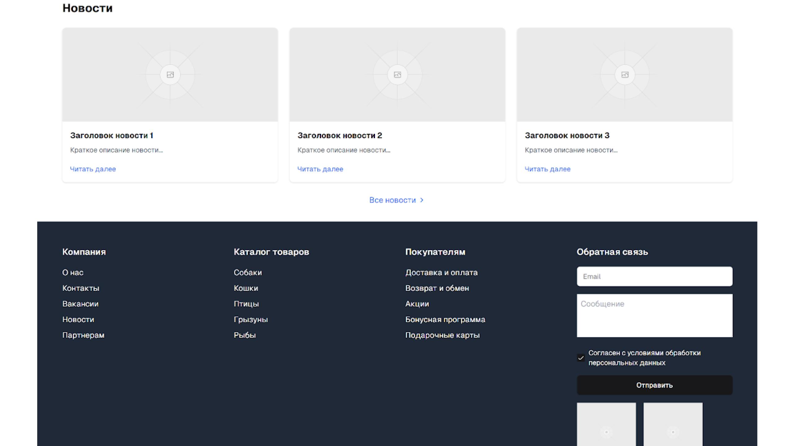 Можно нарисовать прототип и посложнее, например, главную страницу для интернет-магазина: описываем шапку сайта, состав разделов меню, блоки на главной странице в том порядке, в котором их нужно отобразить на прототипе, и подвал сайта. Вуаля, получаем готовый интерактивный прототип главной страницы: