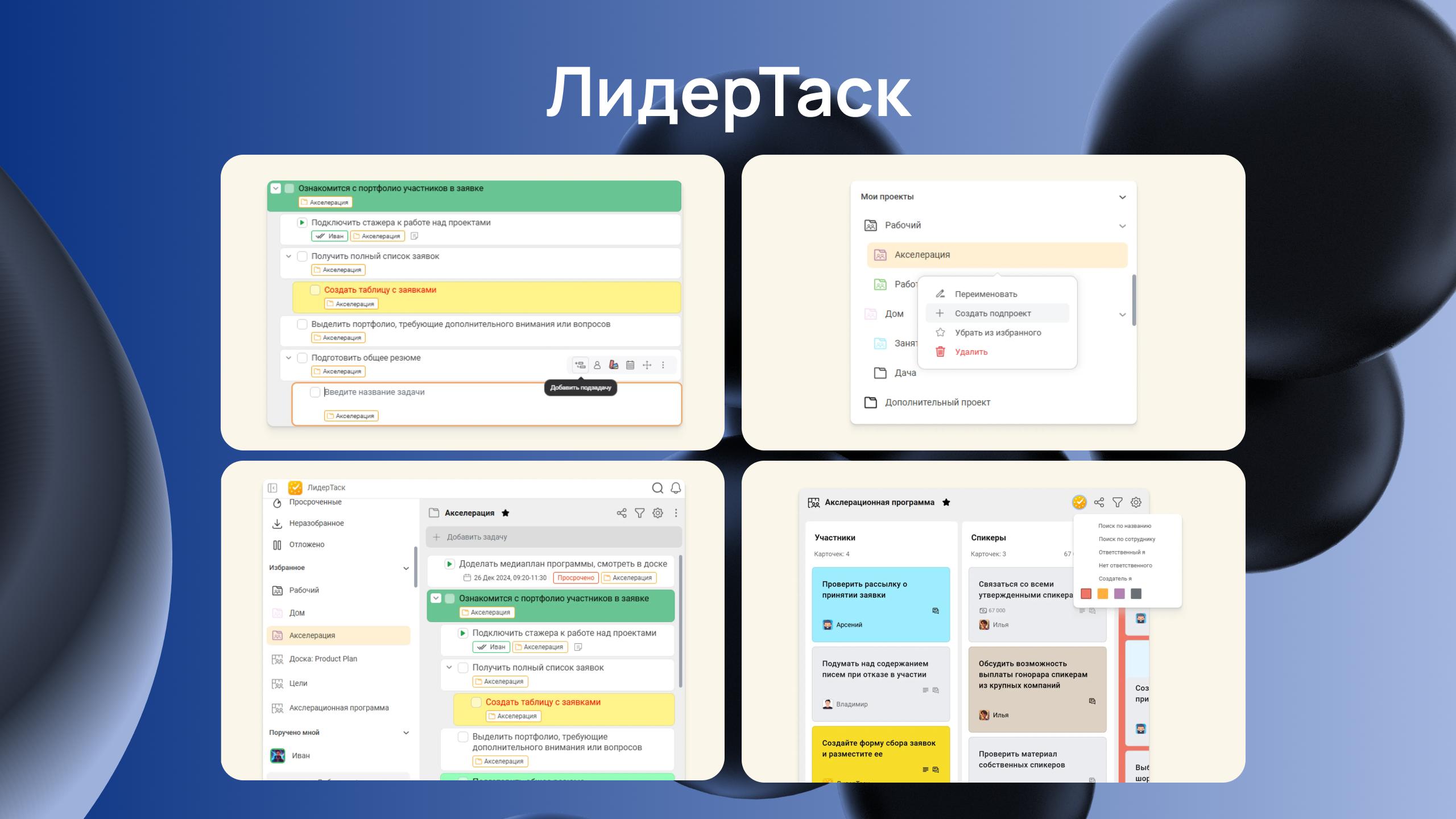 Главная фишка «ЛидерТаск» — совмещение личного планирования и управления проектами. Есть гибкие настройки, инструменты для тайм-менеджмента и работы в офлайне — без постоянного подключения к интернету.