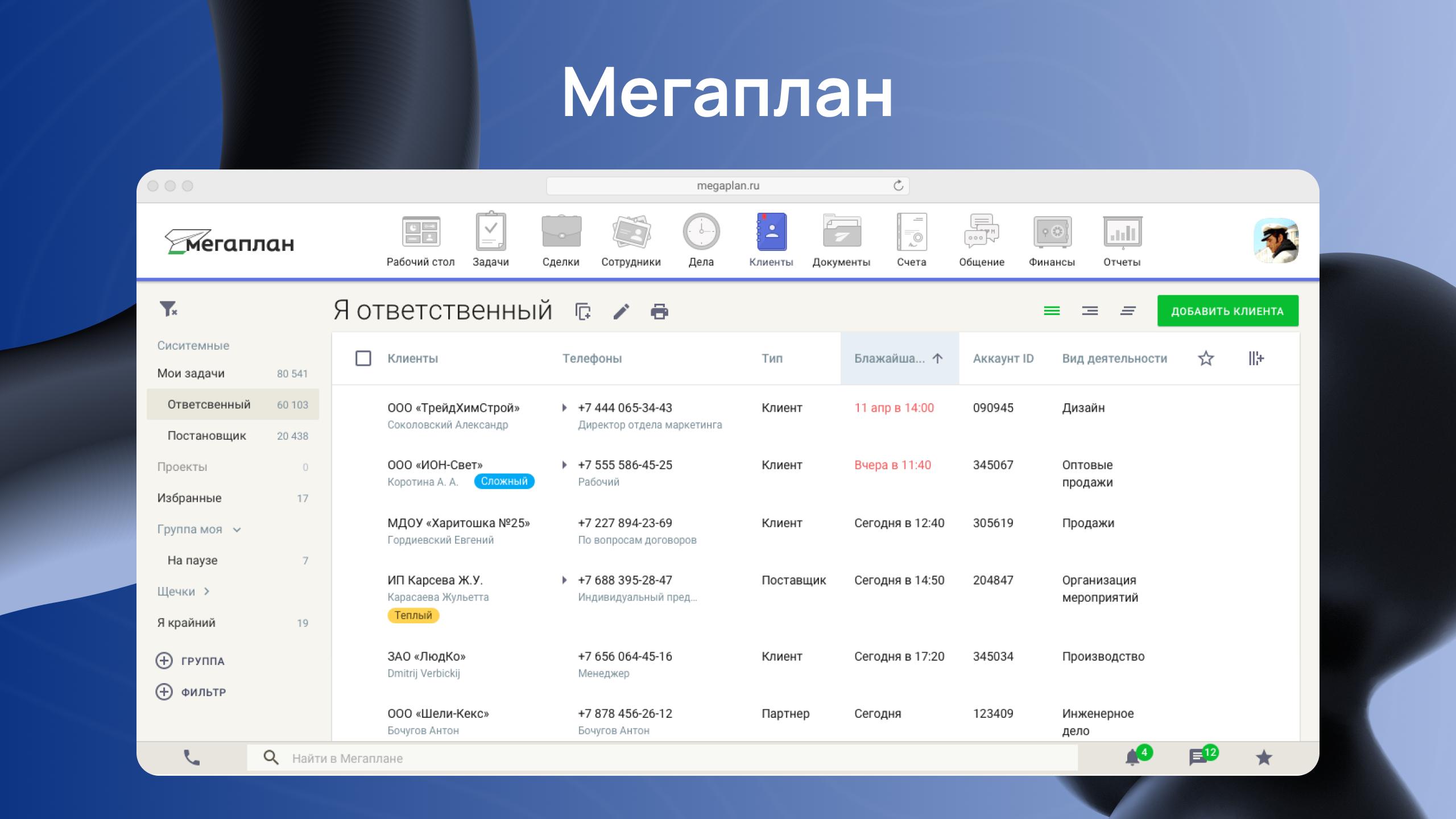«Мегаплан» совмещает CRM и таск-менеджер в единой системе. Это делает его удобным решением для компаний, которым нужно управлять не только задачами, но и клиентскими процессами.