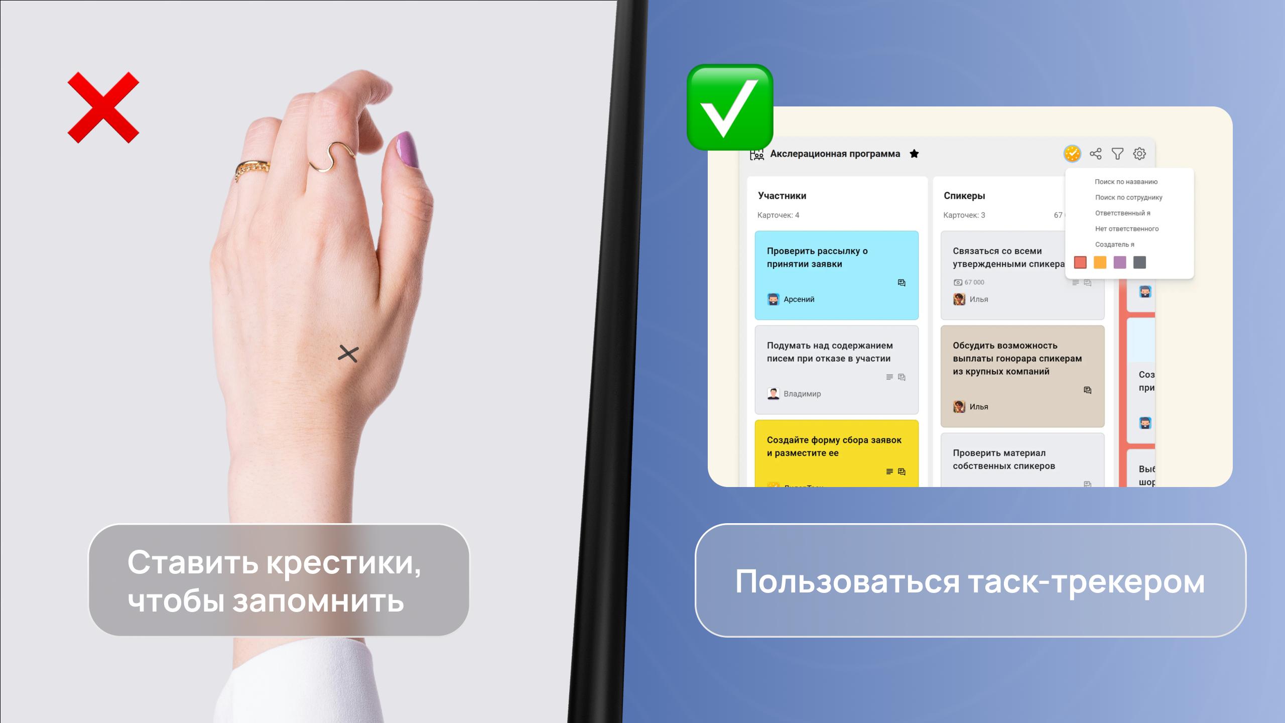 Назначайте ответственных. Система автоматически уведомляет исполнителей и снимает вопросы «кто что делает».