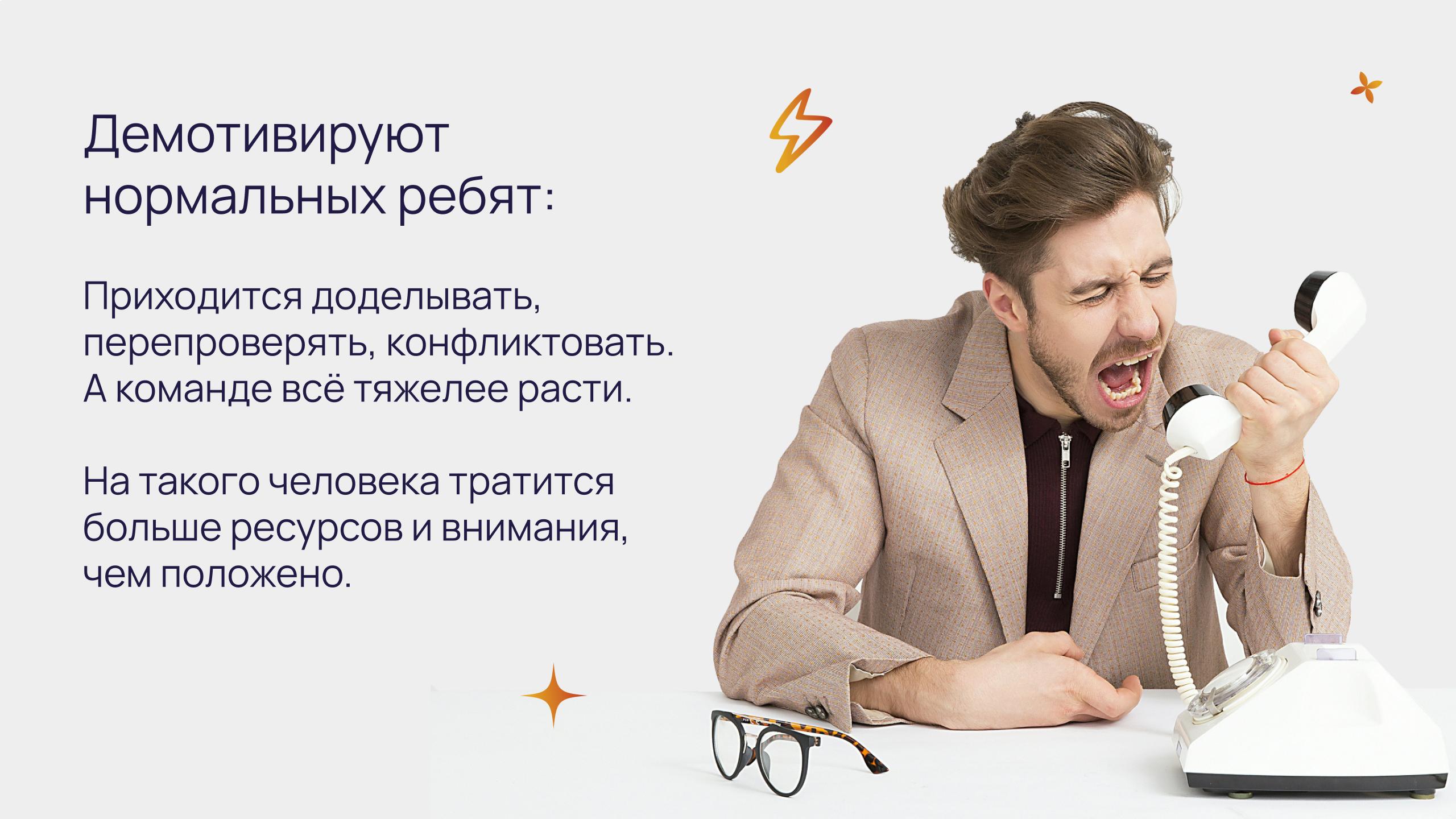 Hola, Amigos! На связи Артём Салеев, СТО агентства продуктовой разработки Amiga. Рискну предположить, что почти в каждой команде есть коллега, которому лучше не давать важных задач, а при идеальном раскладе вообще не трогать. Результаты от таких работников часто непредсказуемые, либо требуется время, чтобы тернистыми итерациями привести все к подобающему виду. В статье поднимем тему неэффективных сотрудников, разберем, что с ними делать, и как определить таких специалистов на берегу.