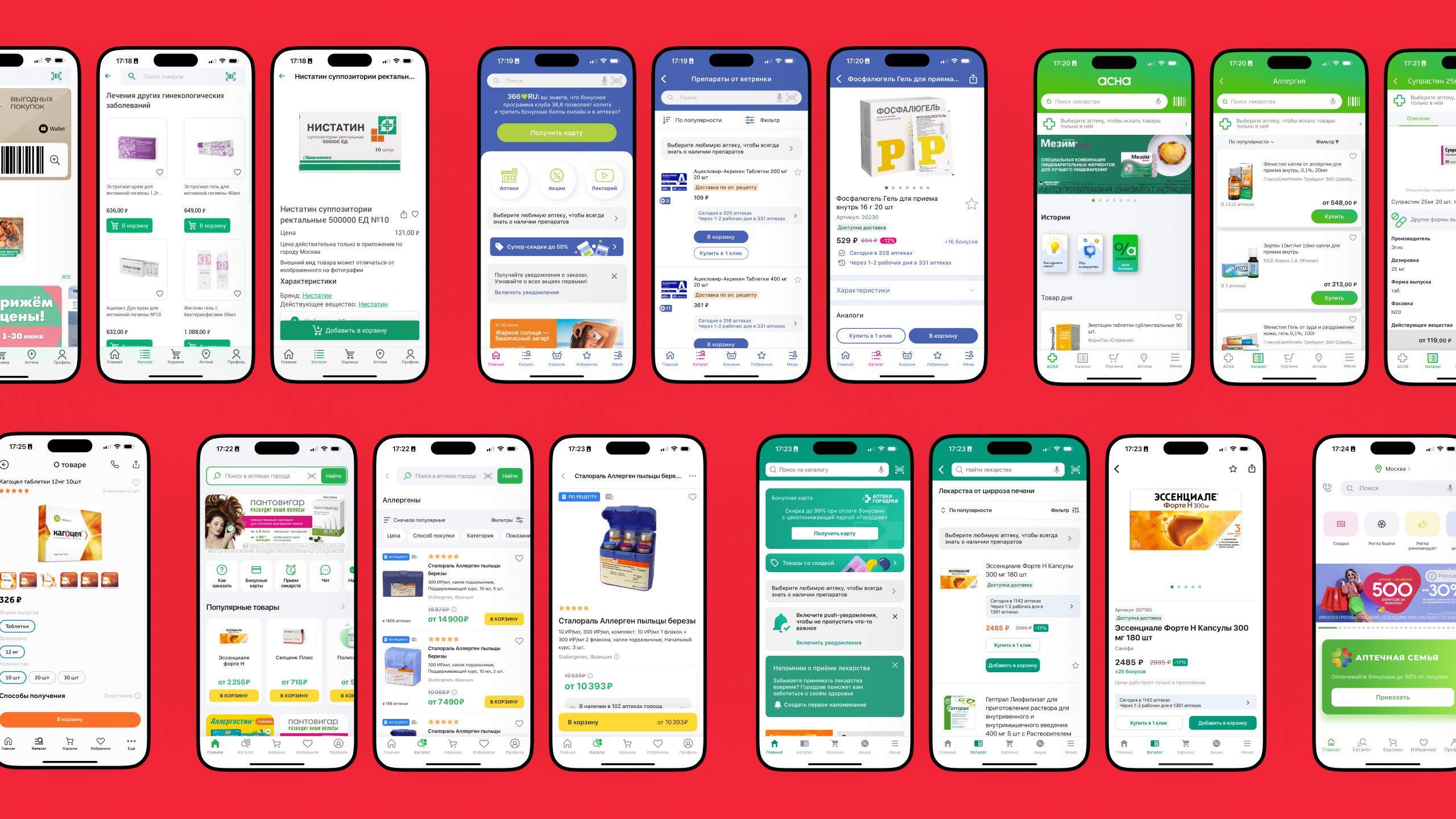 Изучили 8 самых крупных аптечных сетей проанализировали их функциональность для юзеров. Для проведения исследования подключился наш системный аналитик, и мы выделили 8 фаворитов для анализа: сети аптек «Столички», 36.6, Асна, Ютека, Горздрав, Ригла, Здравсити и Еаптека. Использовали Google play, App Store, Yandex, Google поисковую выдачу.