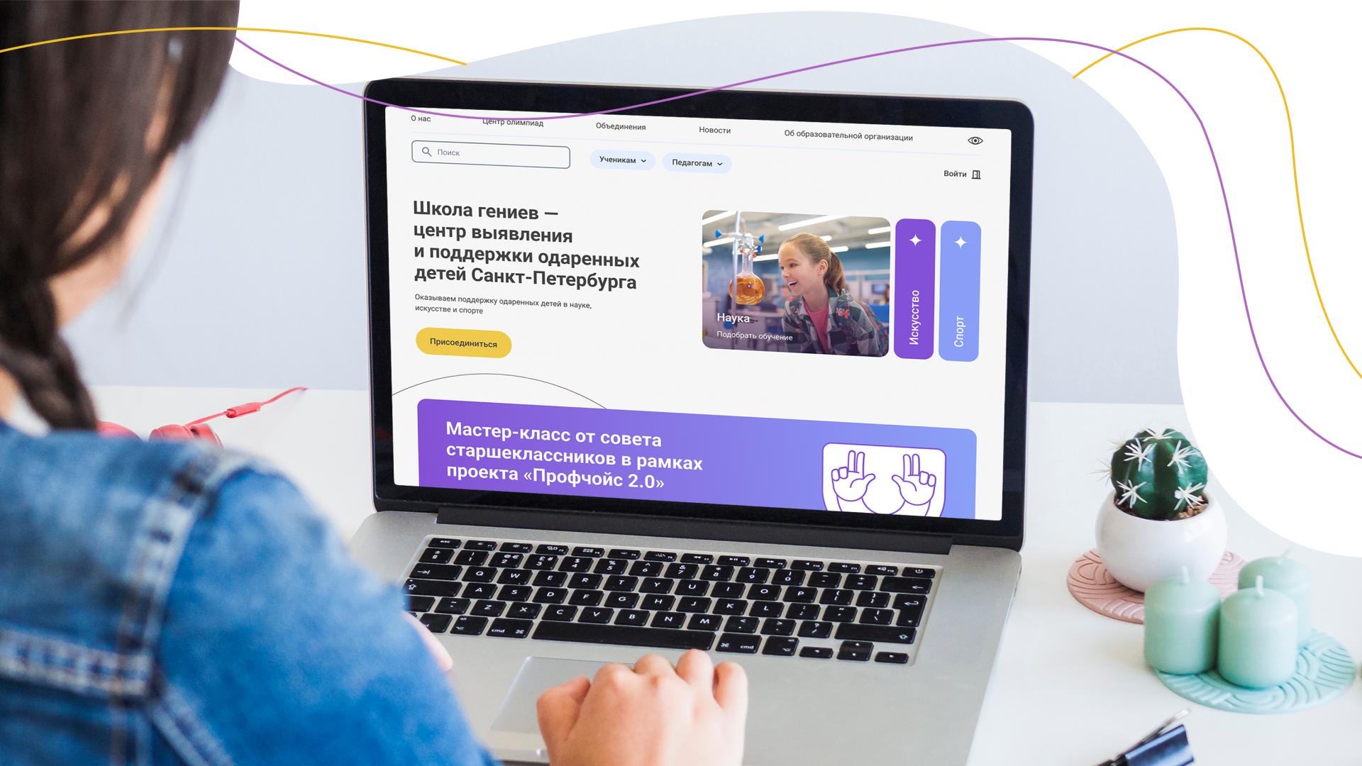 Школа гениев (NDA) — образовательный портал для знакомства пользователей с направлениями деятельности и продуктами школы, налаживания обратной связи с ними, повышения лояльности аудитории, узнаваемости учреждения в системе образования.