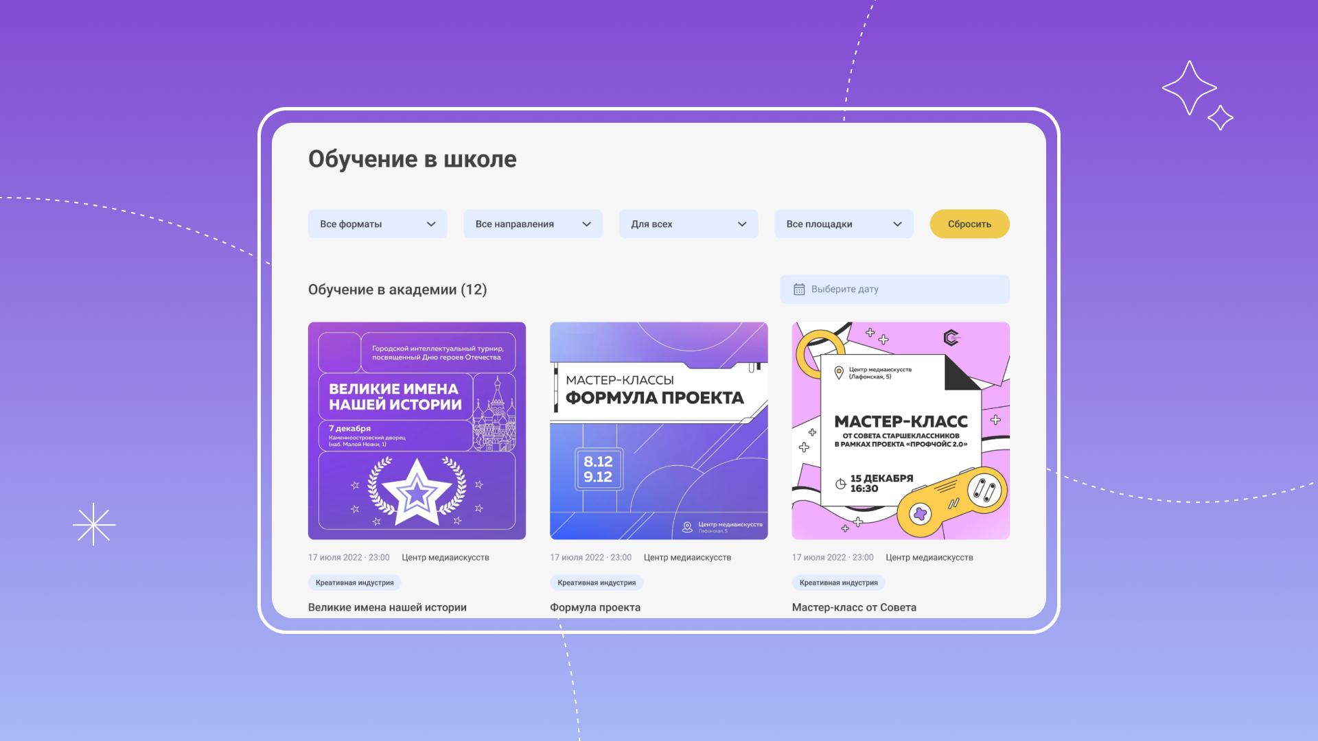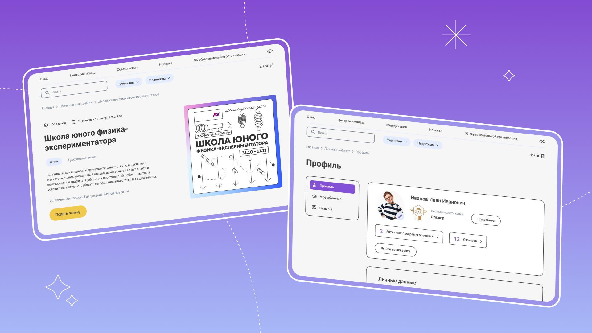 До портала у «Школы гениев» был сайт на конструкторе с множеством подсайтов для мероприятий. Заявки собирались в Яндекс.Формах, что приводило к беспорядку и увеличивало время обработки обращений. Требовалось единое хранилище данных как для школы, так и для ее учеников, с возможностью оперативной коммуникации.