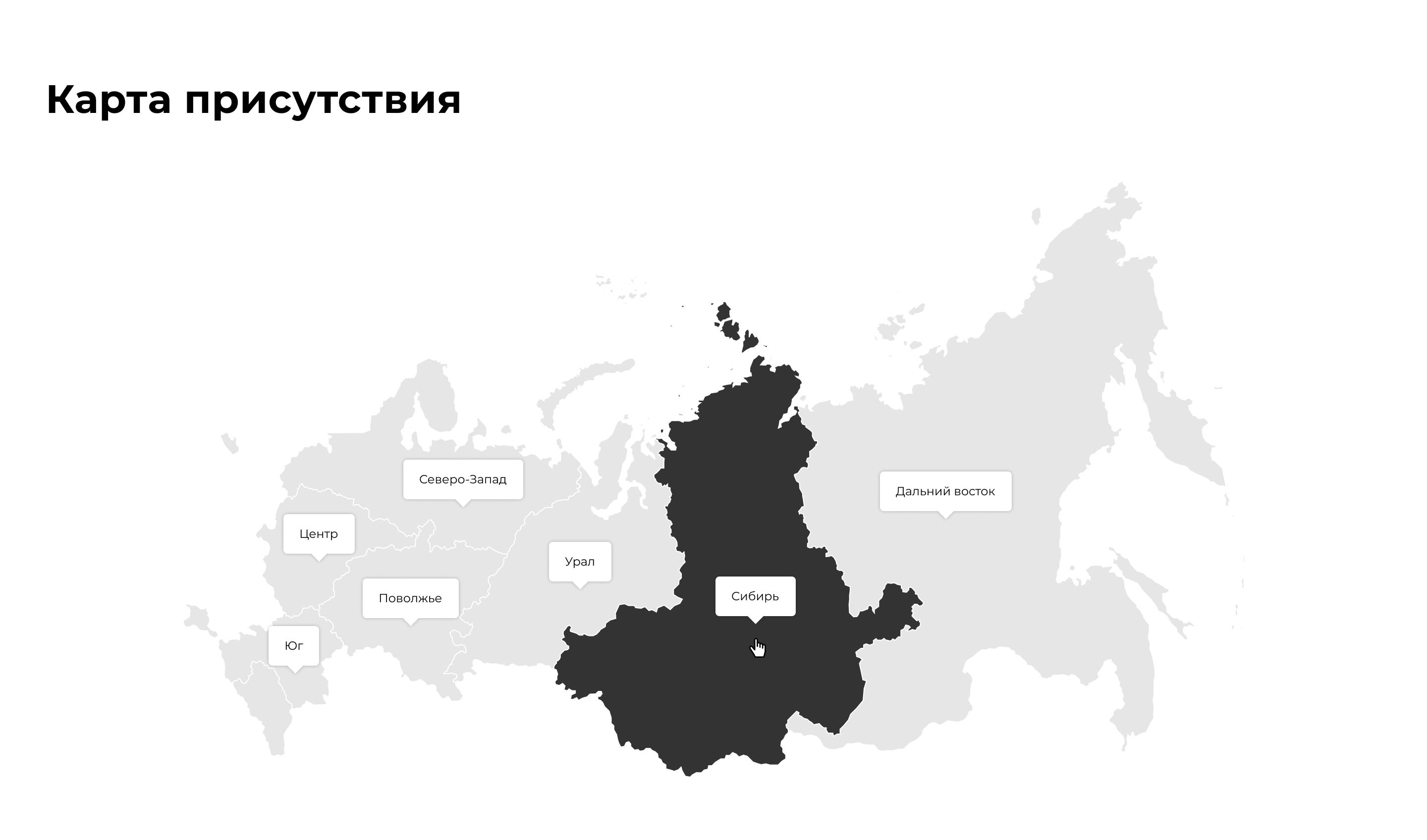 Разработали карту присутствия по регионам: теперь можно кликнуть на свой регион и посмотреть, какие вакансии открыты.