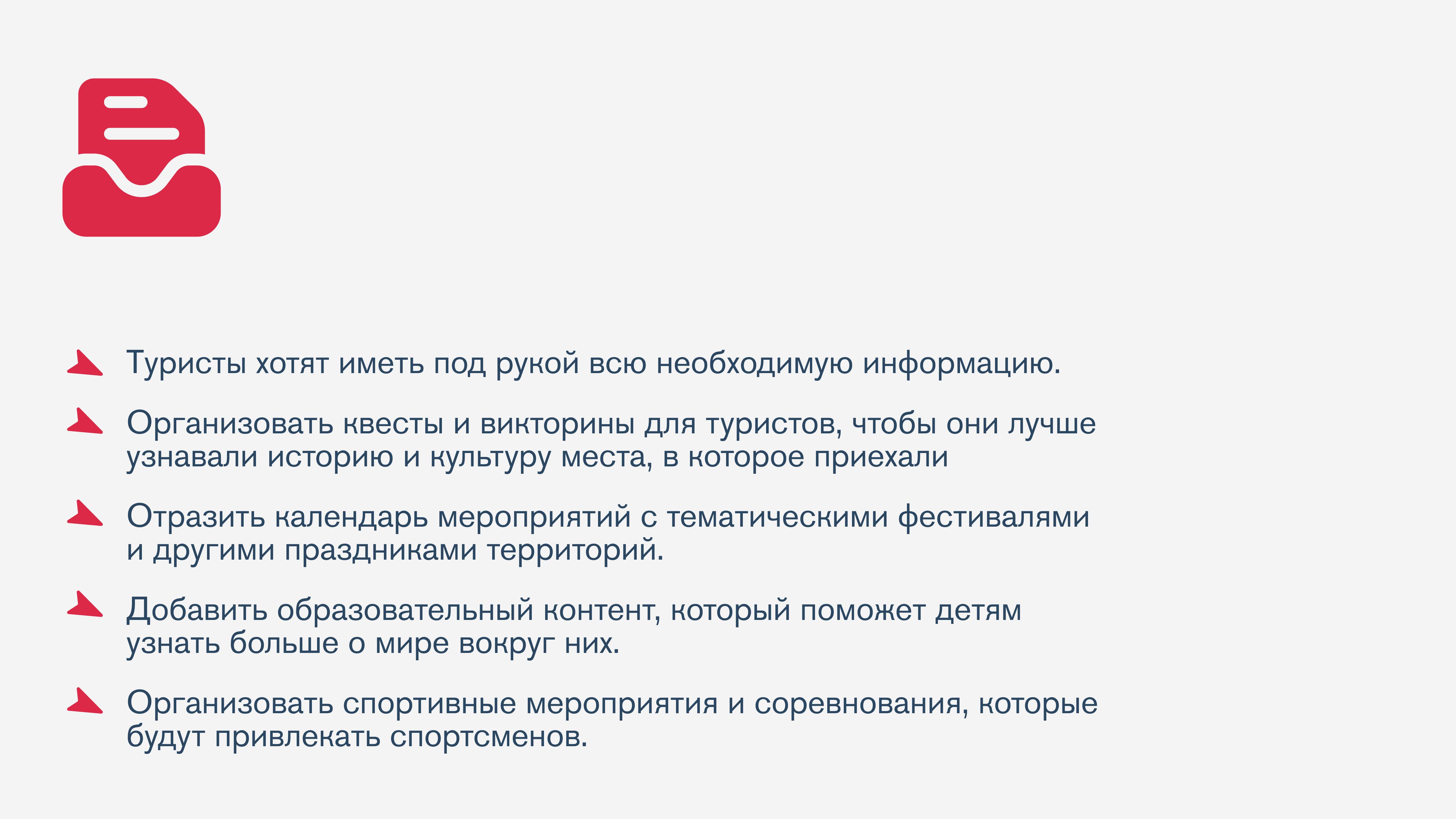 Раньше раздел «Галерея» был просто набором красивых фотографий. Чтобы повысить вовлеченность пользователей, мы переработали его в полноценный «Путеводитель» по культуре региона, городским и природным локациям.