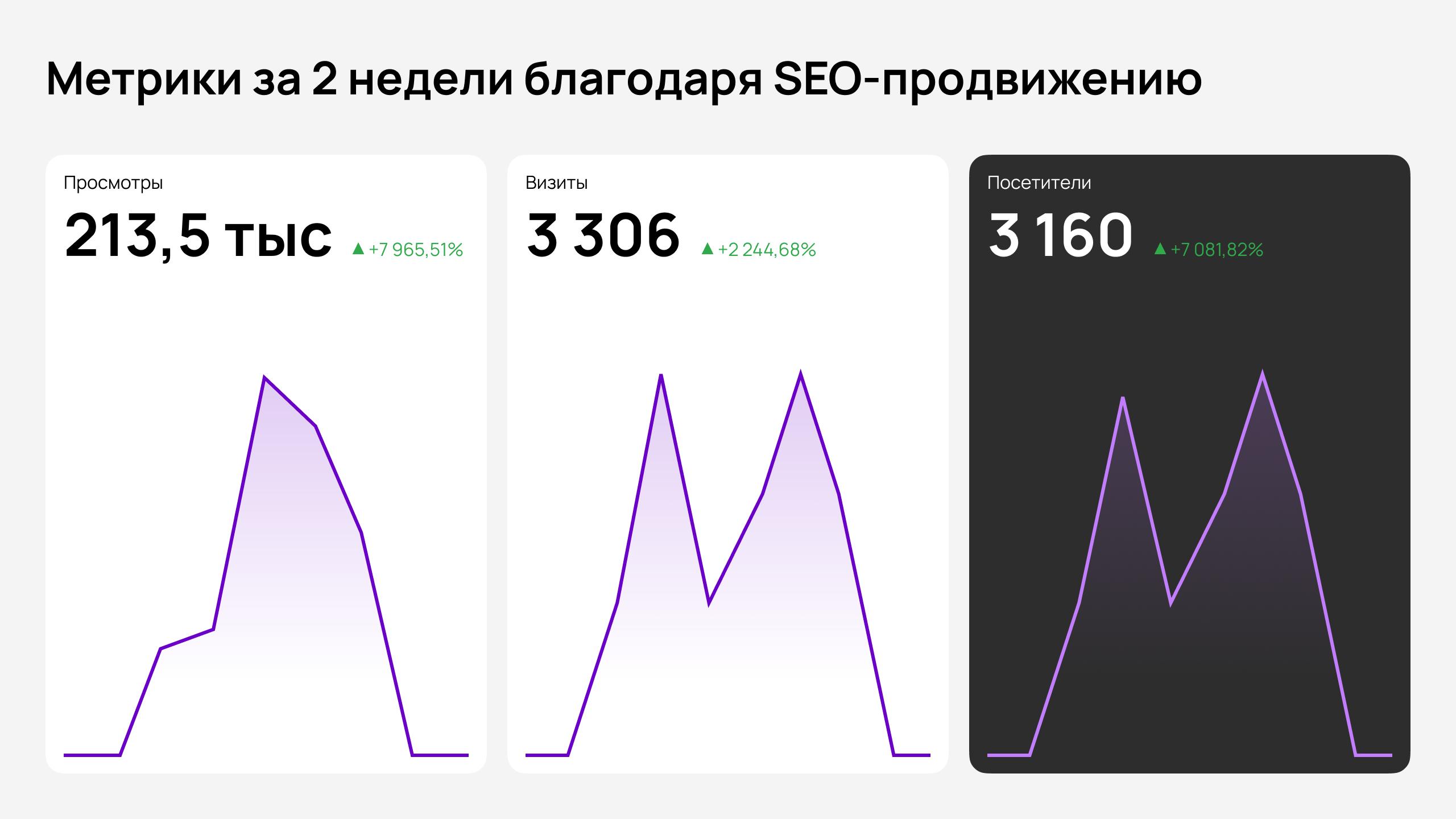 За 2 недели благодаря SEO-продвижению и закупке ссылок удалось привлечь 3160 уникальных пользователей.