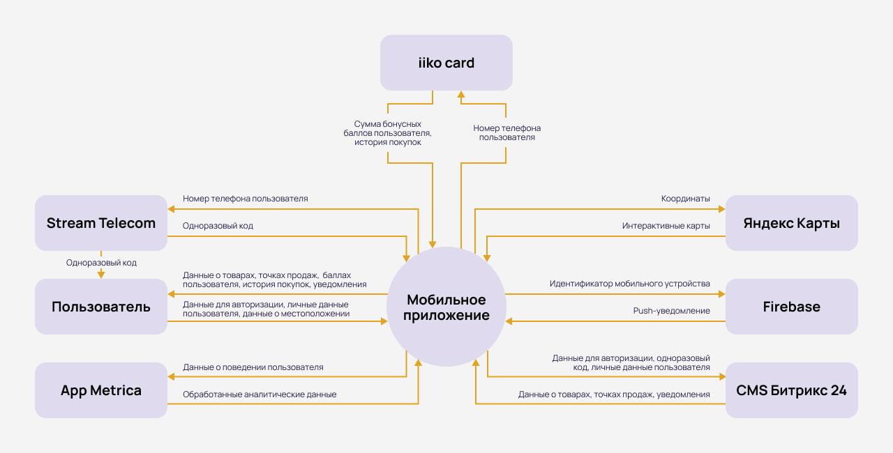 Это диаграмма потоков данных, на которой показаны взаимодействия приложения с внешними системами и пользователями.